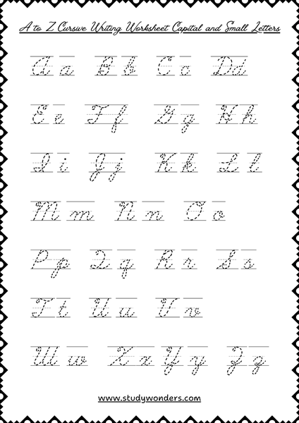 Our A-Z cursive writing practice sheet pdf features: